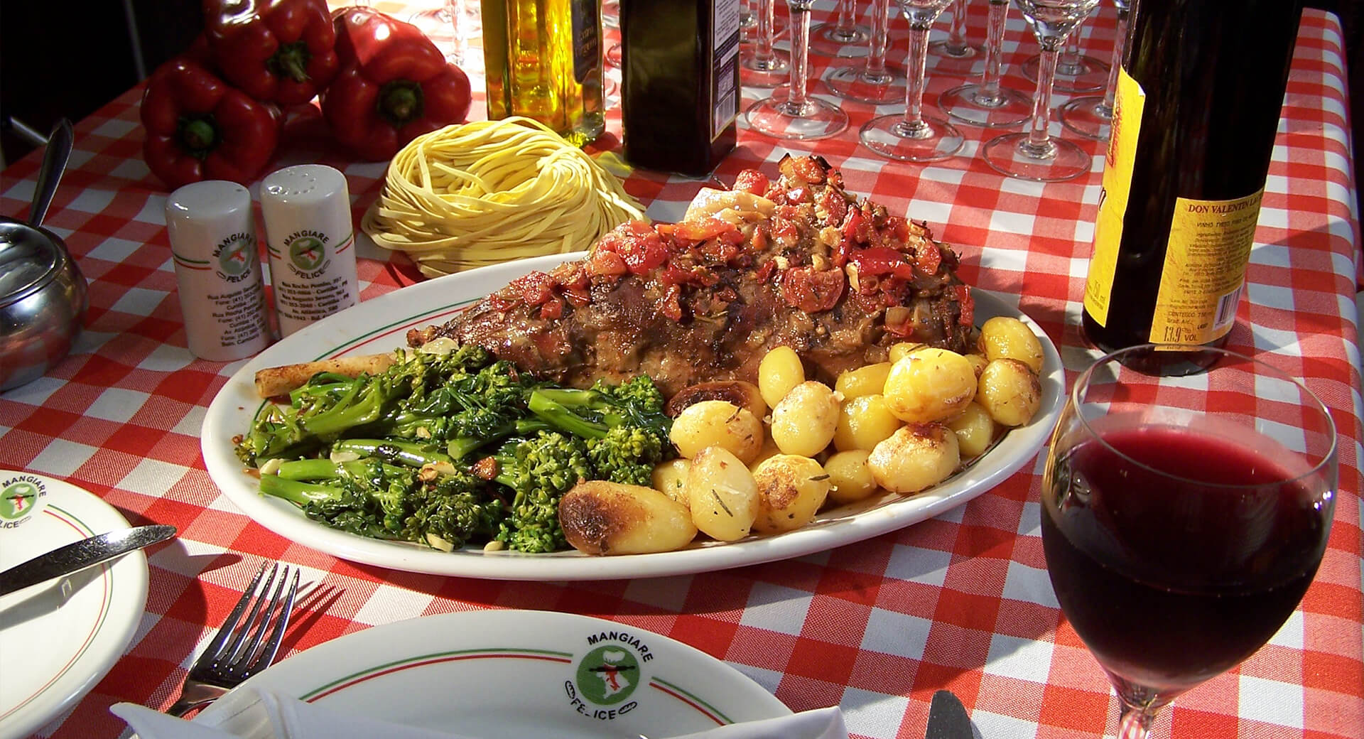 Marinado e assado, com brócolis alho e óleo, batatas coradas ou tagliarini alho e óleo.